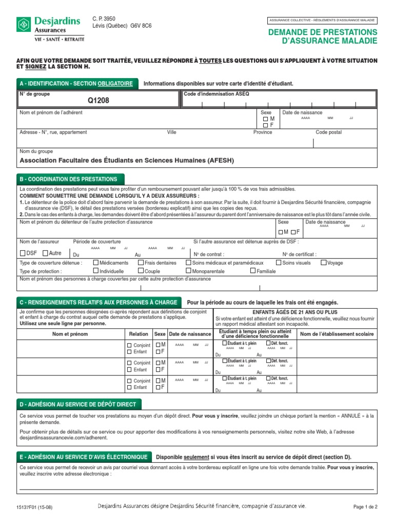 Demande De Prestations D Assurance Maladie 19132 Desjardins