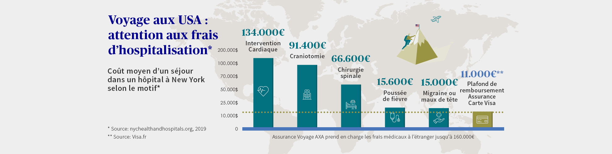 Notre assurance vous couvre en cas daccident de problème de santé de retour anticipé de perte ou de vol de papiers et vous propose même une assistance psychologique. Ainsi avoir une assurance santé étudiant aux USA permettra de réduire considérablement vos frais médicaux. Lassurance Voyage AXA cest la sécurité de partir aux US bien accompagné avec des formules adaptées.