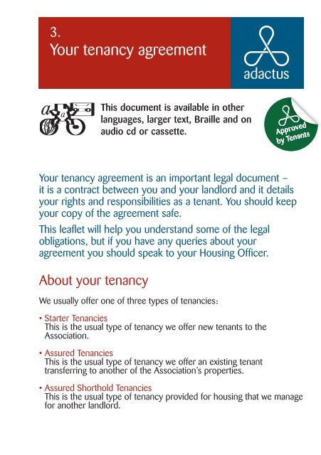 Your Tenancy Agreement Adactus Housing Group Ltd