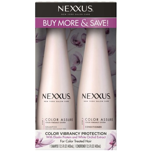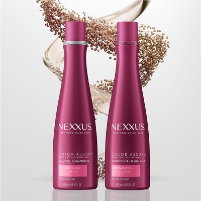 I color mine a a deep shade of red and anyone who dyes their hair red knows how quickly the color fades out. Nexxus Color Assure Shampoo for Colored Hair I love this shampoo its very gentle and has a nice subtle scent. NEXXUS COLOR ASSURE Shampoo with our exclusive PROTEINFUSION blend with Elastin Protein and Quinoa gently cleanses colour treated hair while enhancing its vibrancy.