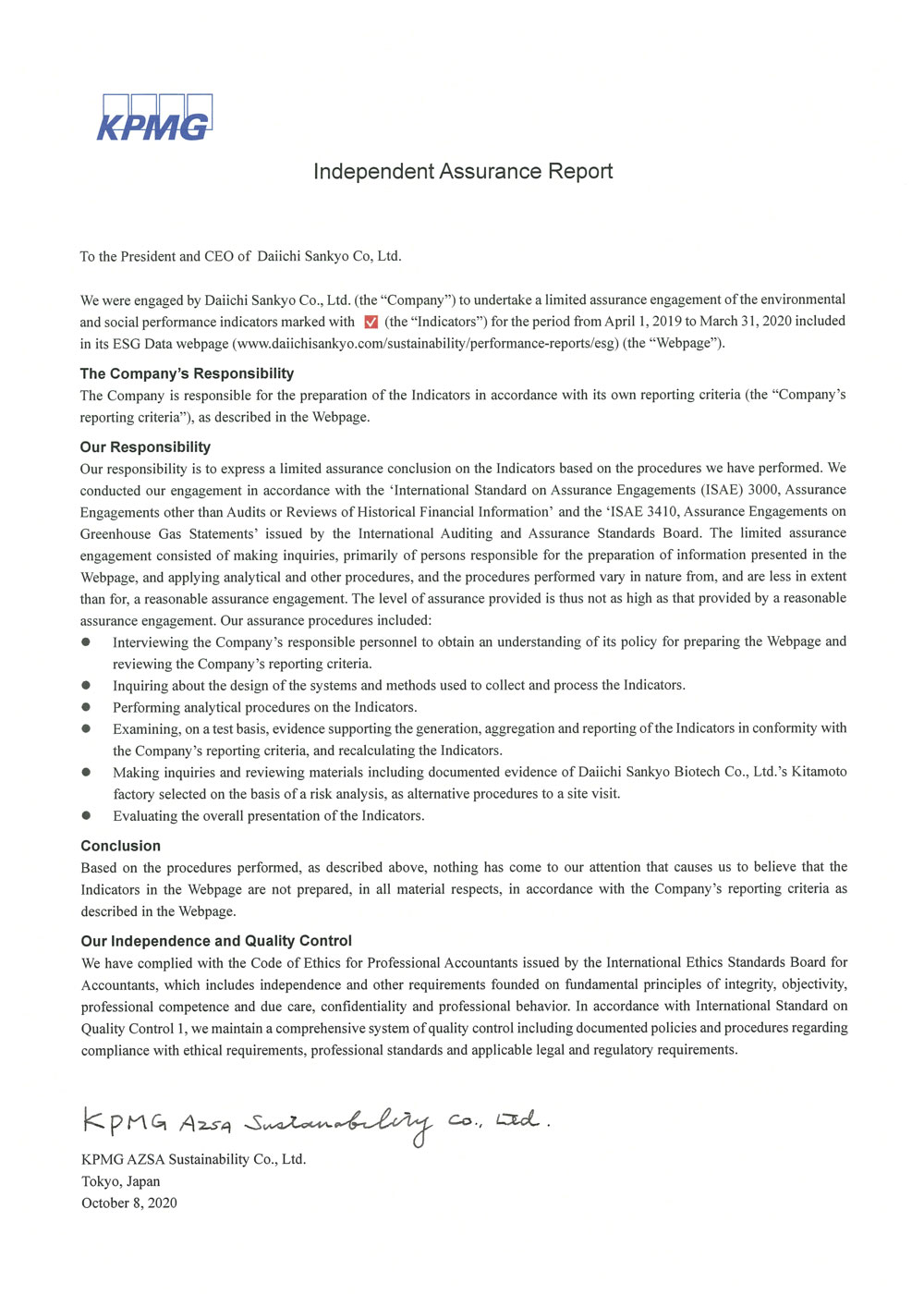 Esg Data Performance Reports Sustainability Daiichi Sankyo