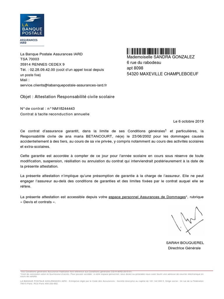 Attestation Rc Scolaire Pdf Assurance Services Financiers